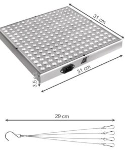 Лед лампа за отглеждане на растения. Осигуряването на допълнителна светлина на растенията е начин за подпомагане на правилното им развитие и осигуряване на идеални условия за растителност. LED панелът за отглеждане на растения осигурява оптимални условия за осветление на стайни растения и оранжерии и не само. LED лампата подпомага растежа, пъпкуването и цъфтежа на различни видове растения. LED панелът за растеж на растенията има вградени цели 225 светодиода, от които 165 светодиода излъчват червена светлина и 60 светодиода излъчват синя светлина. Дължините на вълните са подбрани така, че да се абсорбират максимално от растенията. Това създава оптимални условия за фотосинтезата на много растителни видове. Таблото за осветление на растенията несъмнено ще бъде оценено както от хора, които са любители култиватори на различни видове декоративни цветя или зеленчуци, така и от професионалисти, които търсят начин да ускорят растежа или поддържане на добив. Инсталирането на устройството е безпроблемно, което ще бъде оценено от всеки потребител. Просто включете LED панела за отглеждане на растения в източника на захранване и след това го окачете над растението върху въжетата, прикрепени към комплекта, и това е всичко, можете да го използвате.