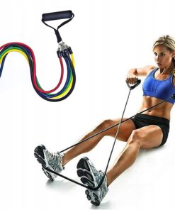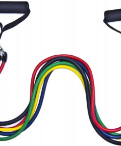 Ленти за домашен фитнес 5 бр. Комплект ластици за упражнения, ви позволява да поддържате добра физическа форма и добра фигура. Най-често се използват за силови тренировки и загряване на мускулите преди същинската тренировка. Могат да се използват като допълнително натоварване при тренировка с дъмбели или щанги. Използват се както от любители, така и от професионални спортисти. Комплектът включва пет еластични ленти с различна еластичност, които могат да се прикрепят към дръжките според нуждите. Всеки ластик е завършен с метална карабина , която може бързо да се прикрепи към стойката, гарантирайки стабилна връзка и безопасна употреба. Комплектът включва две неплъзгащи се дръжки, две ръкохватки със здрави велкро лепенки , които могат да се носят на крака и специална дръжка за монтаж над или под вратата. Разгледайте още продукти в категорията “Ластици за тренировка” – ТУК!