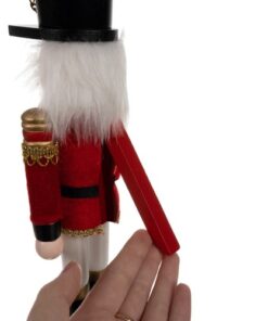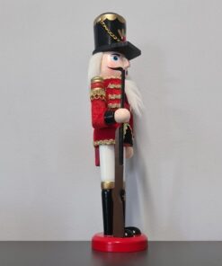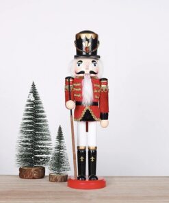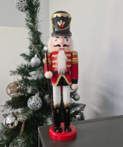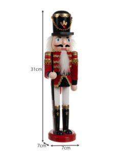 Лешникотрошачка Коледна фигурка 30см 20359. Лешникотрошачката е изработена от дърво, което доказва нейната здравина. Благодарение на използването на най-добрите материали можем да сме сигурни, че ще ни служи много сезони, красиво декорирайки интериора. Фигурката на лешникотрошачката също ще бъде чудесна идея за подарък за любителите на коледните дрънкулки. Лешникотрошачката символизира защита срещу зли духове и опасност. Дървената фигурка може да се постави под елхата, до камината, на скрин или на бюро. Ще изглежда перфектно на масата между коледните ястия. В комбинация с друга коледна украса ще създаде незабравима уютна атмосфера у дома. Дървената лешникотрошачка е една от най-купуваните украси за празниците. Фигурката освен естетическите си стойности има способността да отваря устата си – с дърпане на брадата или задния лост ще отвори устата си.