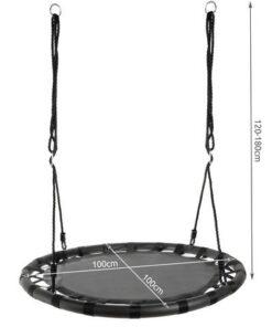 Люлка за градина гарваново гнездо 100см черно. Люлката има широка, кръгла седалка, изработена от желязна рамка, използваният материал е полиестер + найлон + EVA. Товароносимостта до 100 кг е възможна благодарение на използването на плетени въжета с дебелина 10 мм. Това гарантира безопасност и позволява моменти на радост дори и за възрастни. Това е идеално решение за голямо семейство. Размерът и формата му го правят подходящ за няколко души. Гнездото се сглобява лесно и бързо. Вече не е необходимо да търсите допълнителни части в специализирани онлайн или стационарни магазини. В комплекта е включено всичко необходимо за безпроблемното сглобяване на люлката. Люлката има възможност за регулиране на въжето, максималната й дължина е 180 см. Благодарение на това люлката е перфектна за деца (намаляване на височината) и възрастни. Това улеснява безопасното качване и слизане. Здравите плетени въжета с дебелина 10 мм означават, че не е нужно да се тревожите за децата си, докато играят на люлката. Люлката е изработена от материали устойчиви на атмосферни влияния и бързосъхнещи. Благодарение на това може да бъде оставен навън без страх дори при неблагоприятни метеорологични условия. Това ви дава увереност, че дори когато вали или духа много силен вятър, не е нужно веднага да сваляте люлката и да я криете в къщата или гаража/мазето. Разгледайте още продукти в категорията “Къмпинг оборудване” – ТУК!