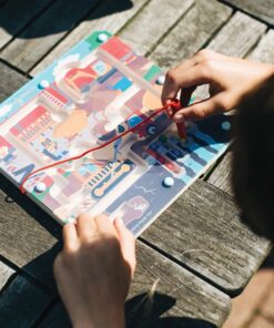 Магнитен лабиринт за деца Строителна площадка Bigjigs. Можете ли да си проправите път през лабиринта на строителната площадка? Нашата цветна игра Construction Maze Game включва четири малки магнитни топки, които трябва да направят пътуването до другата страна на дървената дъска. Магнитните топки са заобиколени от дървена рамка, украсена със сцена на строителна площадка. Можете ли да забележите всички копачи и строители в този лабиринт пъзел? Малките пръстчета могат да навигират в лабиринта, като движат топките през него. Чудесен начин за развитие на фината моторика на децата и координацията око-ръка. Този динамичен дървен пъзел се предлага с магнитна пръчка, която да води топките през лабиринта. Изработен от висококачествени материали с отговорни източници и покрити с нетоксични бои и лакове. Разгледайте още от категорията “Дървени пъзели” ТУК!