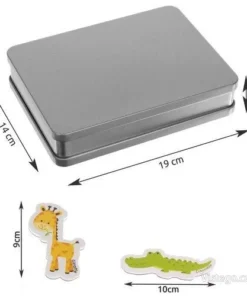 Върху всяко животно има изписано име на английски език. Това позволява, докато подрежда и играе, детето да упражнява английски чрез четене и повтаряне на названията. Така магнити за хладилник съчетават забавлението с лека, естествена практика, без да натоварват заниманието с допълнителни изисквания.