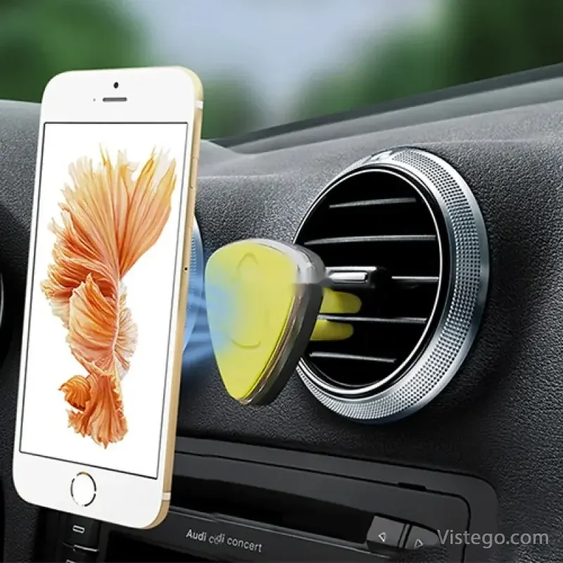 Тази стойка за телефон с магнит е създадена за водачи, които предпочитат подреден интериор и бърз начин да фиксират устройството си. Монтира се на автомобилния вентилатор във вертикално положение и може да се поставя на различни решетки, което улеснява намирането на удобен ъгъл за видимост. Конструкцията е замислена така, че да държи стабилно телефона или таблета ви, докато шофирате, като същевременно помага да се намали рискът от изпускане при неравности.