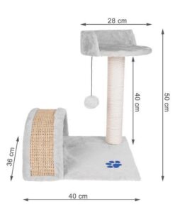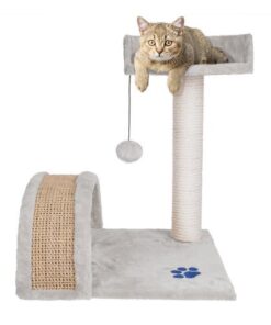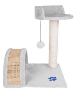 Малка катерушка драскалка за котки в сиво. Котешката природа не може да бъде измамена. Котките винаги ще се изкачат до най-високата точка, за да имат перфектна гледка към околността. Ако не е предназначено да бъде шкаф или цветна леха, осигурете на котката си зона за катерене и платформата за котки ще бъде перфектна за задачата. Основната част на основата и платформата за гледане са покрити с приятна на допир козина, идеална за котешка дрямка, но тук можете да намерите и елементи за драскане, включително стълб, покрит със сезалено въже, който е идеален за точене на котешки нокти. Драскалката за котки е с добре обмислен дизайн, така че е и възможност за интересно забавление. Тук ще открием тунел, топка на ластик, мишка, висяща на връв, която ще занимава котката с часове. Котешко дърво с компактни размери има солидна основа, което е много важно за безопасността на вашата котка. Основата държи земята добре, така че конструкцията не се люлее от една страна на друга, когато котката я прескача или седи на платформата за наблюдение. Разгледайте още продукти в категорията “Катерушки за котки” – ТУК!