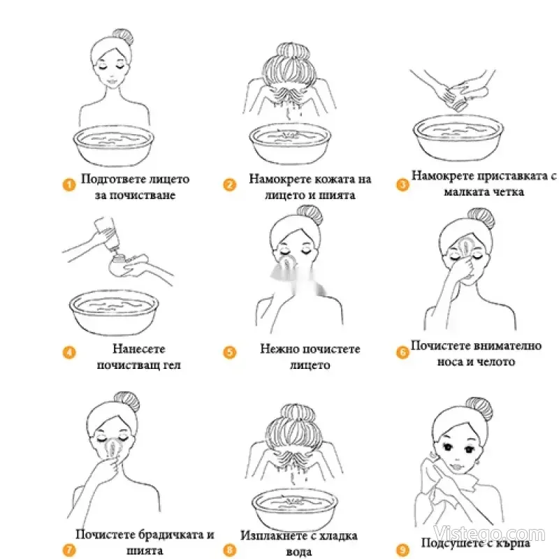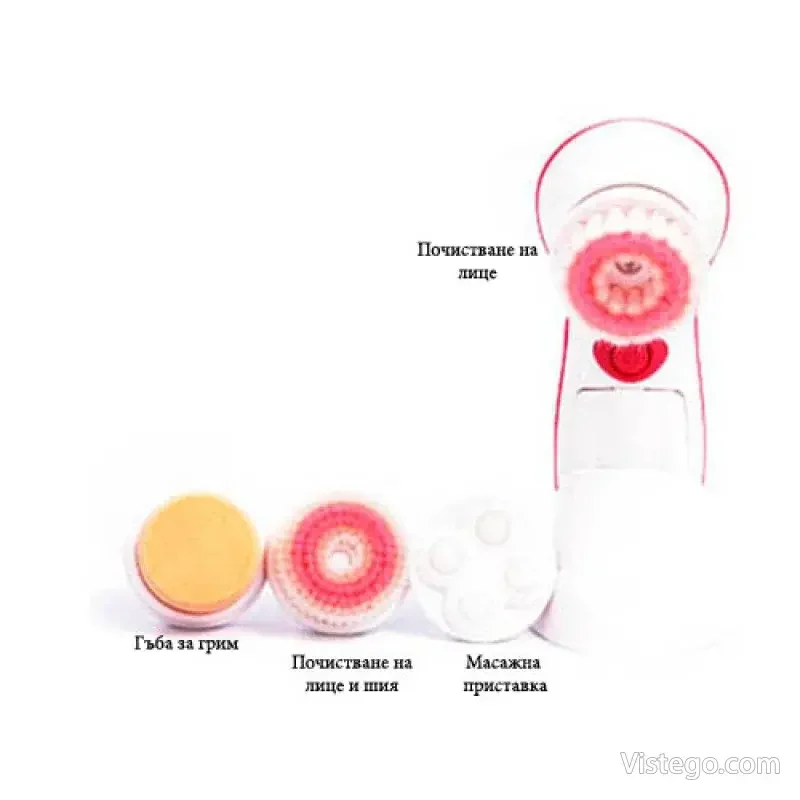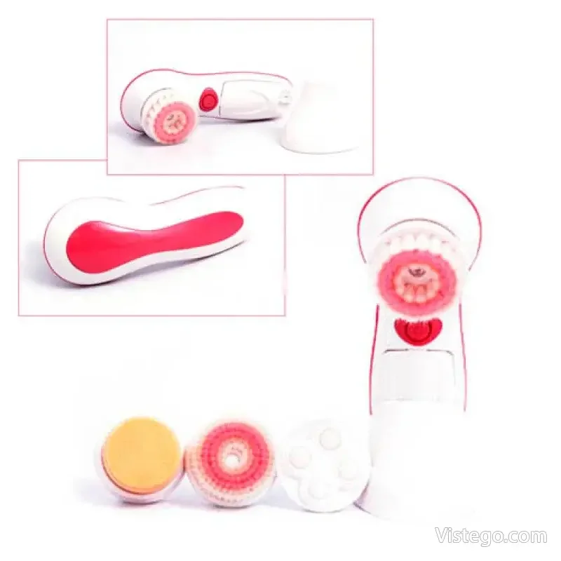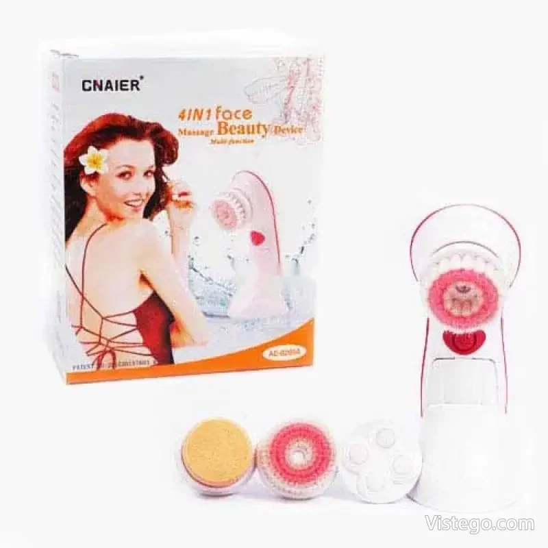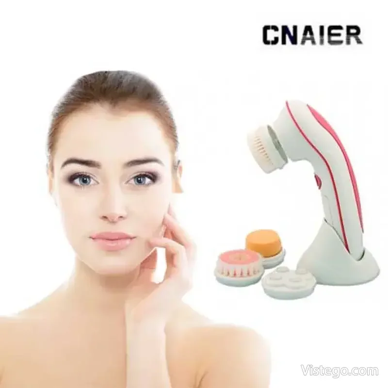 Масажор за лице Cnaier с приставки за почистване, масаж и нанасяне на грим. Удобен комплект със стойка и транспортна кутия.