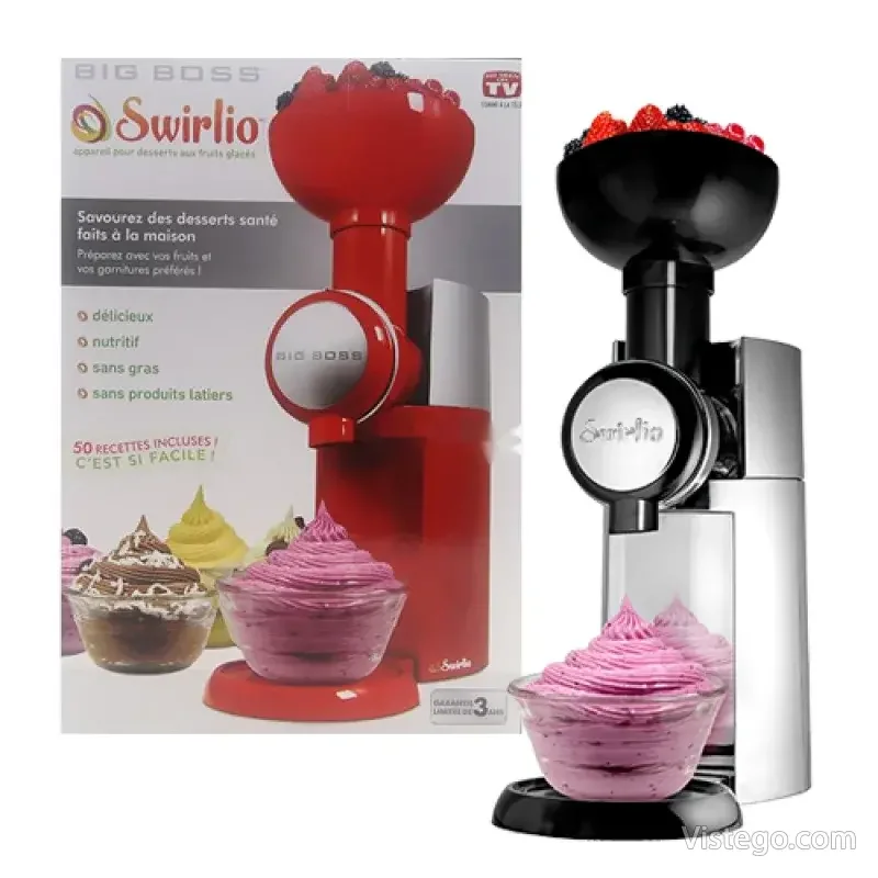 Ако търсите практичен уред за домашни десерти, машина за домашен сладолед The Big Boss Swirlio дава лесен начин да използвате замразени плодове и да поднасяте сладолед у дома с вкус по ваш избор. Машината за сладолед е подходяща както за бързи решения през седмицата, така и за забавни семейни експерименти с рецепти.