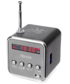 Мини безжична блутуут колонка с радио GB12274. Благодарение на компактните му размери 5cm x 5cm x 5cm можете да го вземете навсякъде, където пожелаете. Получете висока мобилност, независимост и комфорт при използване. Можете да го вземете със себе си на парти, на почивка, къмпинг, лагерен огън, кола, градина и т.н. Когато включите високоговорителя, основата свети дискретно. Колонката има вградено FM радио с пълен честотен диапазон и автоматично търсене на радиовълни. Вградената 300mAh батерия е перфектно решение за слушане на музика на открито и в движение! Мини радиото замества няколко устройства в 1. Освен тунер, устройството е оборудвано с mp3 плейър, miniUSB и USB букса и слот за microSD (TF) карта. Има и жак за слушалки 3,5 мм мини жак, може да се използва като високоговорител за други устройства, напр. смартфон. От своя страна изходът за 3,5 мм мини жак за слушалки и AUX IN гнездо за външни високоговорители. Разгледайте още продукти в категорията “Бутуут колонки” – ТУК!