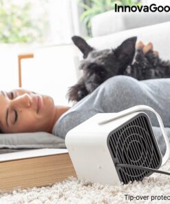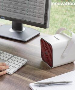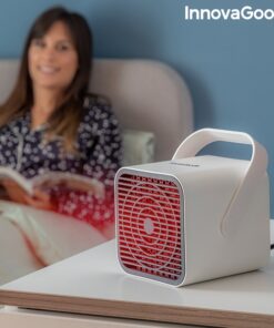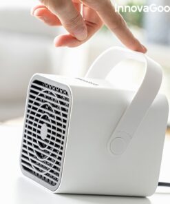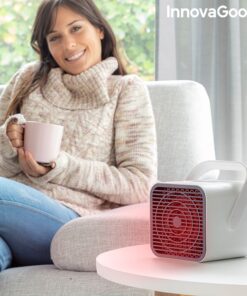 Мини електрически нагревател InnovaGoods. Малък електрически нагревател, който поради малкия си преносим дизайн е много удобен за носене навсякъде. Идеален за поставяне наблизо (на масата, на пода…) и да се наслаждавате на приятната му топлина при четене, работа, гледане на телевизия и т.н. Дръжката се използва и като механизъм за включване/изключване, като се движи напред или назад. Нагревателят няма да се включи, ако не стои на равна основа; от съображения за безопасност, той автоматично ще се изключи, ако падне или се преобърне.