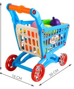 Мини количка за пазаруване – детска играчка. Удобна мини кошница с колела и дръжка ще се използва за пренасяне на покупки, а също така ви позволява да държите други предмети в нея, напр. любими играчки. Количката е снабдена с ключ, с който детето да завинтва и отвива само винтовете; играчката гарантира креативна и многократна употреба. Допълнителните аксесоари позволяват практическо използване, както и повишават привлекателността и разнообразяват забавлението; набор от прецизно картирани мини хранителни стоки позволява интересни забавления в магазина, у дома или при готвене. Ярките цветове на реалистичните миниатюри ще привлекат вниманието на детето и ще го насърчат за игра. Размери (дължина/ширина/височина) 30/16/31см; CE, EN 71 сертификати; възраст 3+; тегло с опаковка: 510гр. – играчката не само дава възможност за прекарване на времето по интересен и радостен начин, но и влияе върху интелектуалното развитие на детето и израстването на неговите двигателни умения; развива въображението и стимулира креативността, както и учи на сътрудничество в група и подобрява социалните и интеграционните умения; полезно е не само в играта, но и при разпознаването на имена и форми, но и при изучаване на цветове и броене.