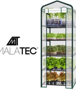 Мини парник за цветя с 5 рафта Malatec. Сглобяването е много лесно и интуитивно. Достатъчно е правилно да свържете елементите един с друг и да поставите фолиото върху конструкцията. Конструкцията може да се използва за защита на семена, зеленчуци, плодове и цветя от вятър и замръзване. Плътно прикрепеното към конструкцията фолио запазва топлината и намалява влиянието на атмосферните влияния. Именно положителната температура на земята и въздуха кара растенията под покритието да започнат да растат по-рано. Градинският тунел е направен от висококачествени метални тръби, след това боядисани със зелен цвят. Закопчалките са изработени от пластмаса. Това е идеално решение за хора, които имат малко пространство и искат да се грижат за растенията си по възможно най-добрия начин. Идеално подходящ за градина, тераса или балкон. 5 рафта ще осигурят голям капацитет на оранжерията. Разгледайте още продукти в категорията “Соларни лампи” – ТУК