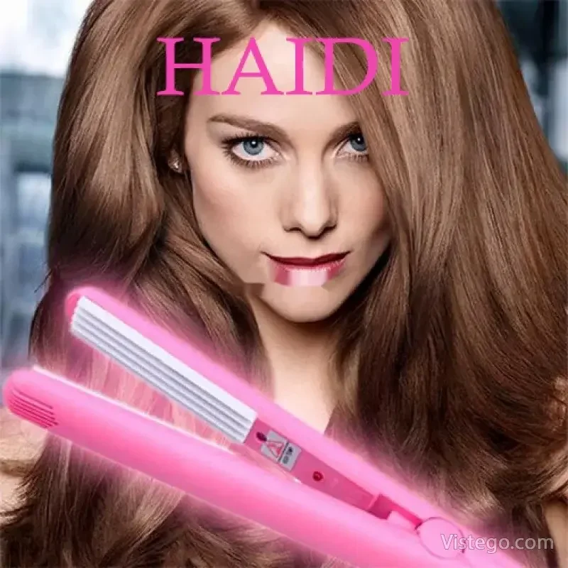 Мини преса за къдрене HAIDI с керамично покритие – компактна и удобна за пътуване и ежедневна прическа, с транспортна кутия.