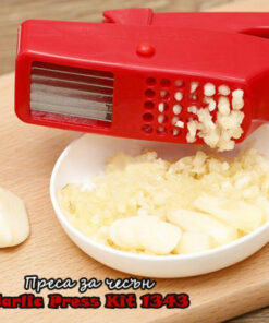 Мини преса за чесън с ножче Garlic Press Kit 1343. Garlic Press преса за чесън е кухненски инструмент, предназначен да улесни процеса на пресоване и рязане на чесън. С нея можете да пресовате чесън за секунди, осигурявайки бързо и лесно приготвяне на храната. Едно от големите предимства на преса за чесън с нож Garlic Press е, че почистването й е лесно. Комплектът включва шпатулка, която ви помага да изчистите пресата от остатъци след употреба. Това означава, че можете да се избегне изцапването на дъски и маси, което често се случва при рязане на чесън с нож. Освен за пресоване, Garlic Press мини преса за чесън с ножче може да се използва и за нарязване на чесън. Това ви дава възможност да приготвите по-грубо нарязан или дори фино настърган чесън, в зависимост от предпочитанията ви за определени ястия. Характеристиките на модела Garlic Press Kit 1343 включват размер от 23 см и случайно избран цвят. Пресата е предназначена за рязане и пресоване на чесън, което я прави универсален инструмент за кухнята. Комплектът включва преса за чесън и транспортна опаковка, която гарантира удобство при съхранение и пренасяне на инструмента. С Garlic Press Kit забравете за изцапаните дъски и силната миризма на чесън в цялата кухня. Този комплект ще ви помогне да подготвите чесън бързо и лесно, без да се налага да използвате нож и дъска. С пресата за чесън Garlic Press можете да спестите много време и усилия при приготвянето на храната. Няма нужда да се занимавате с рязане на чесъна на ръка, което може да бъде мъчително и отнема време. С този инструмент можете да пресовате или нарежете големи количества чесън бързо и безпроблемно. Garlic Press е удобен и ефективен инструмент, който ви помага да пресовате и нареждате чесън бързо, лесно и без миризма. Той е идеален за всички, които обичат да използват чесън в своите ястия и търсят практично и удобно решение за приготвянето му.