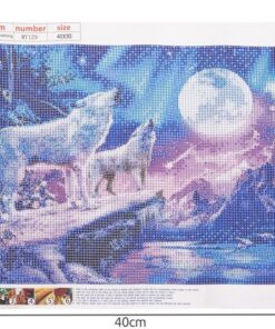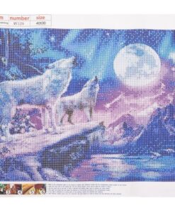 Мозайка – диамантен гоблен Вълци и Луна. Диамантената бродерия се състои в запълване на готовия модел на картината с малки диаманти в различни цветове. Това е многочасова дейност, която не изисква специални умения, а само търпение и прецизност. Това е интересна идея за прекарване на свободното време, което може да се превърне в ново, необичайно хоби. Художествените занимания, особено рисуването с диаманти, оказват голямо влияние върху творчеството и въображението, което се отплаща в много други сфери на живота. Диамантената мозайка изисква много концентрация, прецизност и търпение. Това е начин да фокусирате мислите си единствено върху тази дейност, благодарение на която можете да премахнете стреса и временно да се откъснете от ежедневието. Крайният резултат е впечатляващ не само за човека, който се е занимавал с диамантено рисуване, но и за всеки, който види картината. Диамантите нежно блестят, създавайки невероятно впечатление. Готовата картина може да бъде поставена в рамка или да се окачи без рамка – със сигурност ще се превърне в уникална интериорна декорация.