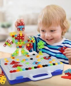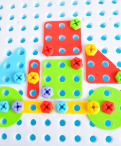 Мозайка с аксесоари – детска играчка. Играта с мозайка е чудесен начин за развитие на ръчни умения, сръчност, упражняване на координация око-ръка и упражняване на способността за логическо мислене. С играчката децата също тренират търпение и концентрация. Креативен начин да се забавлявате с родителите си. Играта се състои в подреждане на картини/модели с помощта на много различни форми (правоъгълник, квадрат, кръг, триъгълник). Избраните елементи се завинтват с отвертка в основата на кутията, върху която има специални отвори. Ярки, контрастни цветове добавят естетическа стойност и привличат вниманието на бебето, както и насърчават множеството забавления. Страхотен начин да се забавлявате с цялото семейство. Това ще позволи на родителите да прекарват време с децата си у дома и ще прогонят скуката, особено когато времето е лошо. Целият сет е в калъф, така че комплектът е лесен за пренасяне. Достатъчно е да опаковате всички елементи и да ги вземете, напр. за пътуване, до семейство, приятели, детска градина, на открито – където детето ви иска да играе. Продуктът ще бъде идеален за подарък за различни поводи, включително рожден ден, ден на детето или празник. Включено: безжичен, отвертка, x64 цветни подложки, x40 цветни винтове, куфар – мозайка с дупки