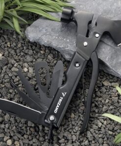 Мултиинструмент за планина 17 в 1 Trizand 21636. Мултиинструментът 17 в 1 Trizand 21636 е изключително универсален и практичен инструмент, който съчетава 17 различни функции в един компактен и удобен за носене дизайн. Той е идеален спътник за активности на открито, къмпинг, туризъм, планинско катерене, риболов, ремонтни проекти или просто работа в градината. Основното предимство на този мултиинструмент е, че включва цяла гама от полезни инструменти, които могат да ви помогнат в различни ситуации. Сред тях са: брадва, заключващи клещи, пила, стъргалка за риба, режеща отвертка, шестостенен ключ, харпун, отварачка за бутилки, трион за дърво, кръстата отвертка, джобно ножче, чук, нож за тел, клещи, броня и ключалка. Това значи, че можете да се справите с много различни задачи, без да трябва да носите отделни инструменти. Важно е да се подчертае, че този мултиинструмент е проектиран с мисъл за безопасността на потребителя. Той разполага с механизъм за заключване на дръжката, който предотвратява случайно отваряне на инструментите и ги държи сигурно и здраво на място. Отвертката също е оборудвана със силиконова защита за острието на брадвата, която допълнително осигурява безопасна употреба. Мултиинструментът идва със здрав калъф, който е предназначен за съхранение и носене. Калъфът е затворен с велкро, което позволява лесно и бързо отваряне и затваряне. Освен това, калъфът разполага със специална кука, която ви позволява да го закрепите към колана на панталона си или към раницата, което ви дава удобство при носене и бърз достъп до инструментите. Компактните размери на мултиинструмента го правят идеален за носене в пътешествия и активности на открито. С дължина само 17,5 см и тегло 376 грама, той не заема много място и може лесно да се прикрепи към колана или раницата ви, осигурявайки ви лесен достъп до важни инструменти по всяко време. Това освобождава допълнително пространство във вашата раница и ви предоставя инструмент, който винаги да е под ръка, когато имате нужда от него. Също така, стойността на мултиинструмента Trizand 21636 е подчертана от материала, от който е изработен. Той е произведен от висококачествена неръждаема стомана, която гарантира здравина, издръжливост и дълготрайност на инструмента. Това го прави подходящ за употреба в различни условия и същевременно го предпазва от корозия и ръжда. Комплектът включва само мултиинструмента и калъфа за него. С този многофункционален мултиинструмент, вие разполагате с удобен и ефективен инструмент, който ще ви помогне в различни ситуации. От занаятчийски проекти до преживяване на приключения на открито, този мултиинструмент ще бъде вашият верен спътник.