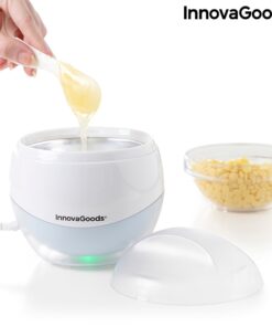 Нагревател за кола маска InnovaGoods. Практичен нагревател за восък за комфортно обезкосмяване у дома, което дава професионален резултат, който е по-евтин. Дълготрайна епилация, която ефективно премахва космите и оставя кожата мека и чиста. Този компактен електрически нагревател за многократна употреба е много лесен за използване: просто поставяте восъка вътре, затваряте капака и го включвате. Отоплителната система ще се разтопи восъка за около 30 минути и ще го поддържа при идеалната температура. Докато се нагрява (времето може да варира в зависимост от количеството и вида на восъка), светодиодът на основата ще мига и когато светодиодът изгасне, восъкът е готов. Ако намалите температурата, светодиодът ще мига отново и восъкът ще се нагрее отново автоматично. Включва шпатула за нанасяне и премахване на восъка и има прорези, които държат шпатулата. Шпатулата трябва да се използва за нанасяне на восъка върху областта на тялото и трябва да се нанесе в посока на растежа на косата, след което изчакайте около 30-60 секунди докато восъкът изсъхне напълно, след това го отстранете със сила с едно издърпване в посока обратна на растежа на косъма и го издърпайте от корените. Нагревателят е с мощност 120 W, с капацитет 450 ml и достига максимална температура от 80 ºC. Подходяща за крака, подмишници, бикини линия и други части на тялото. Препоръчва се почистване на излишния восък с масло за тяло или подобно. Излишният восък вътре в нагревателя може да се използва повторно.
