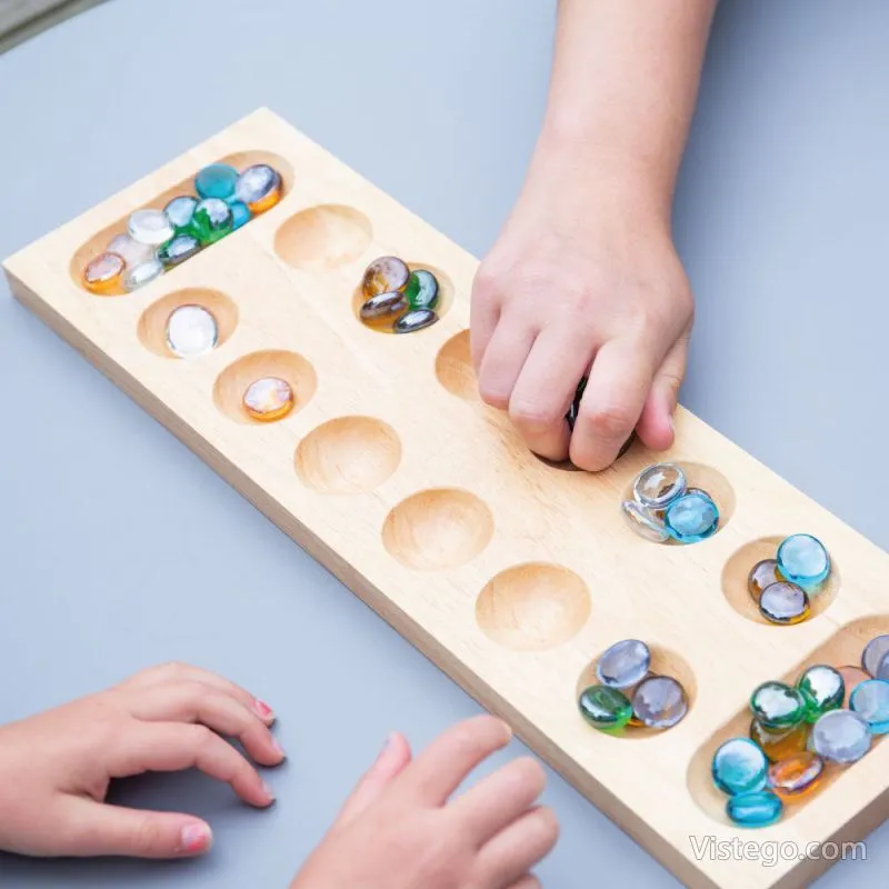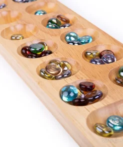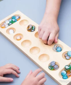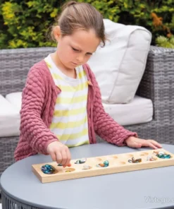 Настолна игра Манкала от Bigjigs за двама, с ясни правила и стратегическа игра. Идеална за семейни моменти и развитие на мисленето.