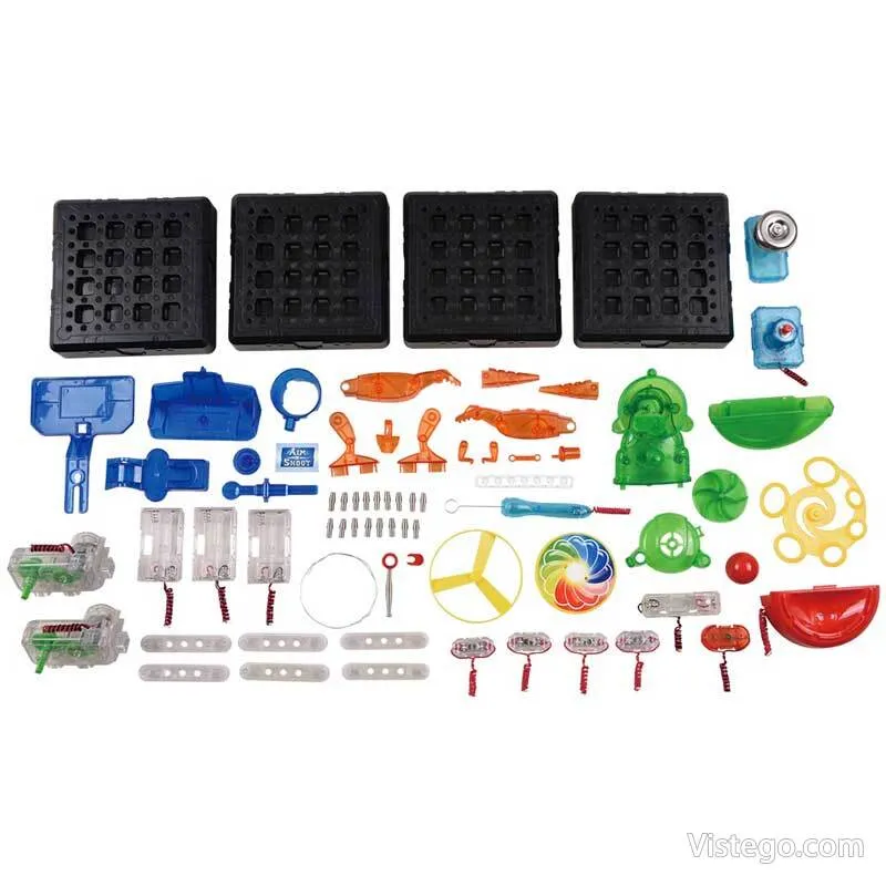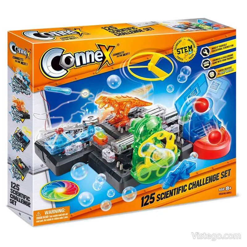 Научни експеримента за деца, които съчетават логика и сглобяване в забавна семейна игра, с модули и финална обща задача.