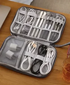 Несесер органайзер за кабели Trizand 23834. Водоустойчив материал: органайзерът е изработен от водоустойчив материал, който предпазва кабели, зарядни устройства и други електронни устройства от случайно навлизане на вода. Това осигурява допълнителна защита на вашия електронен инвентар, като същевременно поддържа кутията лесна за почистване благодарение на материалите, които се почистват лесно. Голям брой отделения: калъфът за кабели разполага с множество отделения и джобове, които позволяват съхранението на различни видове кабели, зарядни устройства, слушалки и други аксесоари. Отделенията са оборудвани с мрежа, което улеснява организацията на съхраняваните предмети. Подходящ за пътуване: органайзерът разполага с дръжка за носене, която го прави лесно преносим при пътувания, в офиса или на срещи. Това удобство осигурява на потребителя достъп до всички кабели, зарядни устройства и електронни устройства по време на пътуване. Затваряне с цип: органайзерът е снабден с цип, който позволява затварянето му на естетичен начин. Този дизайн помага за поддържане на пространството организирано, като същевременно премахва бъркотията, свързана с множество кабели. Такова решение е идеално за хора, които се стремят да поддържат своите електронни устройства подредени и в безпроблемно състояние.