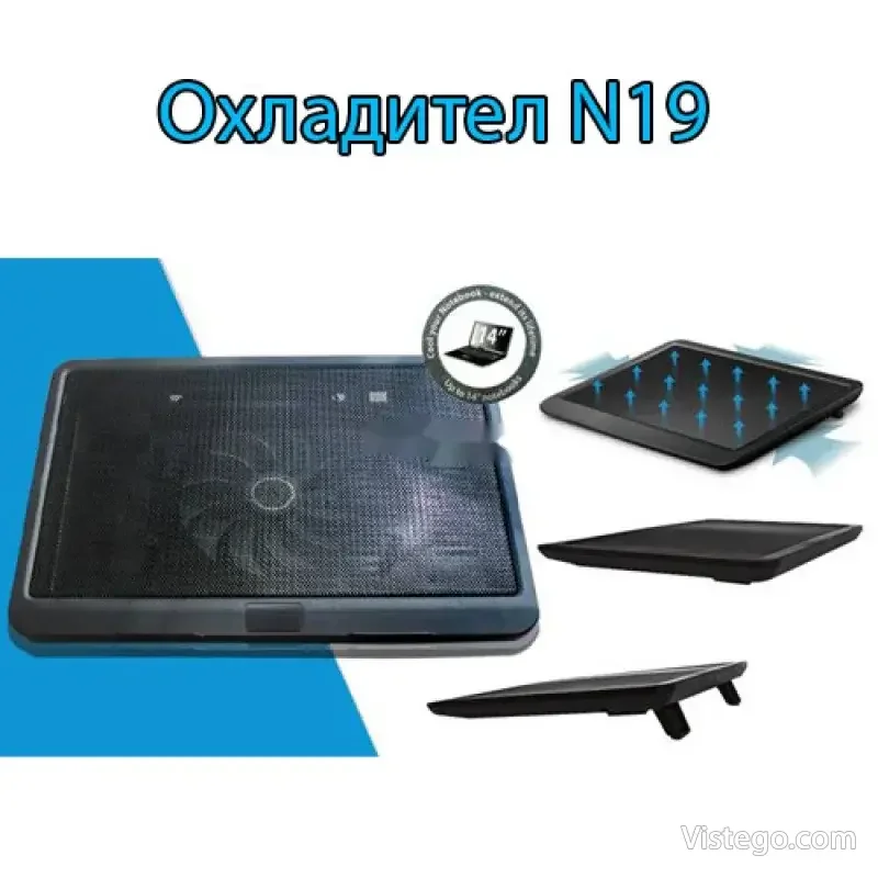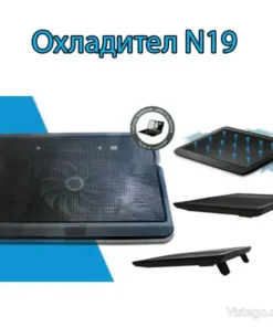 Охладител за лаптоп N19 с USB захранване, накланящ дизайн и тих режим на работа. Подходящ за устройства от 10″ до 14″.