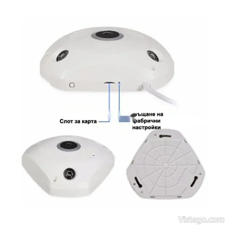 - Комплект: Панорамна VR камера с вградени кабели, крепежни елементи, транспортна опаковка