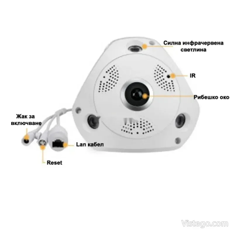 - Обектив: VR 1.44mm, ъгъл на виждане 360°