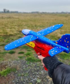 Пистолет за изстрелване на самолети Kruzzel. Самолетът е направен от стиропор, така че е изключително лек, така че може да лети високо и далеч. Нещо повече, този самолет може да лети и на тъмно. Оборудван е с ефектна LED подсветка! Много лесен за използване. Просто опънете самолета върху релсата на пистолета, докато чуете „щракване“. След като приложите самолета, просто дръпнете спусъка и гледайте как самолетът лети. Изработен от висококачествен и екологично чист дунапрен и пластмаса. Комплектът е лек, нетоксичен, издръжлив и удароустойчив. Забавлението е изключително пристрастяващо както за деца, така и за възрастни. Ще осигури много емоции и смях с часове. Важното е, че по този начин децата упражняват чувството си за ориентация, двигателните и двигателните умения, както и развиват своите рефлекси. Разгледайте още продукти в категорията “Играчки за навън” – ТУК!