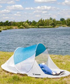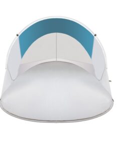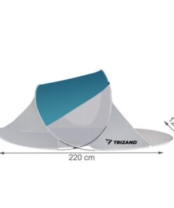 Плажна шатра в тюркоазен цвят с размер 220x120x90cm Trizand. Плажната тента предпазва ефективно от прекомерно слънце, но и от вятър, което е изключително важно, ако отивате на плаж с деца и искате да им осигурите безопасна почивка и сянка. Можете лесно да скриете нещата си в него, без да се притеснявате, че чантата или дрехите ви ще бъдат покрити с пясък. Освен това ще ви позволи да четете книга на воля и да се отпуснете дори и на най-натоварващото слънце. Скелетът на палатката е оформен от гъвкави нишки от фибростъкло – благодарение на което се разгъва за 2 секунди след изваждането й от покривалото. Той е перфектна комбинация от чадър и параван, но е много по-удобен за използване и заема много по-малко място, което е важно при опаковането на багажа. Комплектът ще улесни сглобяването на палатката и ще я държи близо до земята дори при силен вятър. Всичко е в специален калъф. Допълнително комплектът включва и покривало с ластик, благодарение на който лесно можете да предпазите сгънатата палатка от спонтанно разгъване. Това позволява безопасно използване на палатката и лесно разгъване и сгъване. Капакът е с цип и дръжки, които позволяват удобно пренасяне. Разгледайте още продукти в категорията “Къмпинг оборудване” – ТУК!