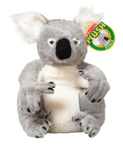 Плюшена играчка за деца Коала Melissa & Doug. Добър ден, любители на коала! Тази очарователна сиво-бяла плюшена коала е готова да се сгуши в скута на дете и да стане приятел за цял живот. Козината му е толкова мека и подходяща за гушкане, че децата никога няма да искат да я оставят! Реалистичните детайли включват големи рошави уши, дълбоки кафяви очи, мек нос, розов език, мило изражение и пръсти на ръцете и краката с меки, пришити „нокти“. Коалата е висока около 35 см. Разгледайте още от категорията “Плюшени играчки” ТУК