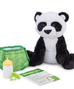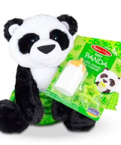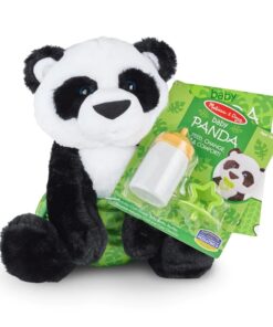 Плюшена играчка за деца Панда Melissa & Doug. Сгушете се с очарователното плюшено животинче Melissa & Doug Baby Panda! Това малко черно-бяло мече панда с мека, копринена полиестерна козина е високо приблизително 28 см. и предлага всичко необходимо за грижата за бебето – подвижна залъгалка и бебешко шише се побират в устата и има удобна платнена пелена за смяна! Карта за активност за многократна употреба има сертификат за осиновяване, който трябва да се попълни, контролен списък за грижи и забавни факти за бебета панди в дивата природа! Децата на две и повече години ще обичат да се грижат за собственото си животинче. Разгледайте още от категорията “Плюшени играчки” ТУК
