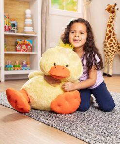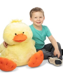 Плюшена играчка за деца Пате Melissa & Doug. С този мек, гигантски приятел в живота ви всичко ще бъде просто патешко! Супер мекият и мек плюш и пълнеж правят тази огромна патица забавна за прегръщане. Издръжливо изработено от висококачествени материали, то ще издържи години на гушкане. Роли-поли патенцето е високо 50см. и широко 45,5 см. С крила за размахване, оранжеви ципести крака и клюн, и очарователен сноп от „пера“ на главата, той е идеален за детски стаи, от детски ясли до студентски общежития! Разгледайте още от категорията “Плюшени играчки” ТУК
