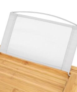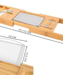 Подвижен SPA рафт за вана от бамбук – създаден от абсолютно устойчив на влага материал, който изсъхва бързо; също така е лесен за почистване и не е нужно да се притеснявате за ивици или видими пръски. Рафтът не само е красив когато се постави, но е и функционален; ще ви служи с години. Това е продукт, създаден за хора, които обичат да си вземат дълги вани. Рафтът осигурява бърз достъп до аксесоарите, от които се нуждаете за вашата баня. Възглавницата се регулира от 75-112 см, което означава, че може да пасне на различни размери и видове вани. Рафтовете са проектирани така, че да осигурят комфорт и функционалност в банята. Проектирайте домашен спа център. Направете маска/пилинг, вземете любимата си книга или гледайте филм, изпийте чаша вино и се насладете. Пълният релакс е гарантиран.