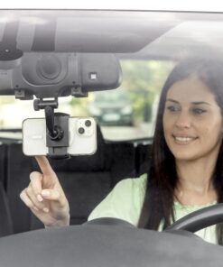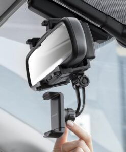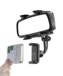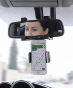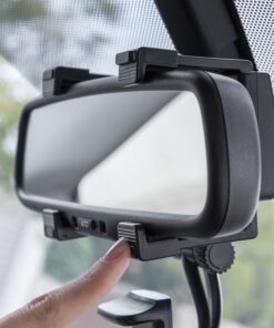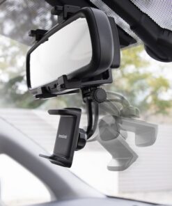 Поставка за телефон върху огледало за обратно виждане InnovaGoods ви позволява да поставите мобилния си телефон в оптимална позиция в колата, така че да го виждате правилно, докато шофирате по пътя.