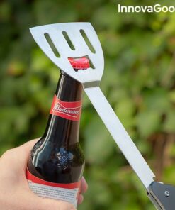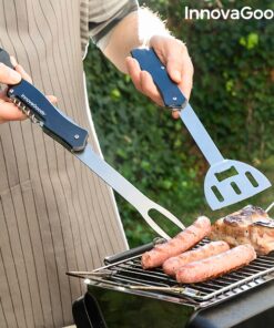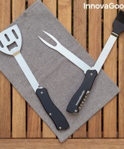 Практичен сет прибори за барбекю 5 в 1 InnovaGoods. Много удобен и практичен комплект принадлежности за барбекю за приготвяне на изискани барбекюта. Техният многофункционален компактен дизайн ги прави идеални за пътуване навсякъде. Комплектът се състои от различни прибори, които се сгъват лесно и заемат минимално място. Можете също да ги разглобите, тъй като шпатулата може да се отдели от другите прибори, за да се използва по-лесно. Идеален за къмпинг, пътувания в провинцията, планина и др. Разгледайте още от категорията “Барбекюта на дървени въглища” ТУК