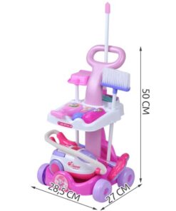 Прахосмукачка с аксесоари за почистване – детска играчка. С играчка детето се научава да поддържа ред и чистота в собствената си стая. Детето може да играе като майка, чистеща апартамента. Комплектът включва истинска, малка прахосмукачка, която перфектно абсорбира разлятите полистиролови топки. В комплекта освен прахосмукачката и количката са включени и четка за прах и имитации на почистващи препарати.