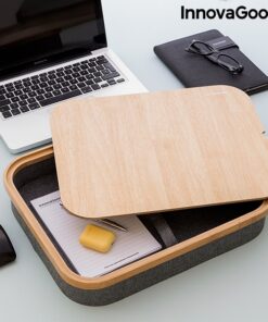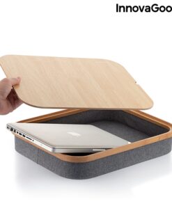Преносима подложка за лаптоп InnovaGoods. Оригинално преносимо бюро за лаптоп с твърда дървена горна табла и стабилна опорна основа със стилно ленено покритие. Горната табла е подвижна и има прорез за лесно отваряне. Разполага с отделение за съхранение на множество предмети (лаптоп, мишка, мобилен телефон, зарядно устройство, писалка, тетрадка, очила, слушалки и др.). Вътрешната велкро каишка е идеална за задържане на вашия лаптоп сигурно на място, когато го съхранявате в отделението за съхранение. Новаторски многофункционален дизайн го прави изключително гъвкав и адаптивен, което го прави полезен за много приложения в различни настройки. В допълнение, тази маса е лека, лесна за транспортиране и съхранение. Идеален способ за удобна работа с вашия лаптоп, както и за писане, четене, рисуване, хранене и др. Може да се използва навсякъде, като например на легло, диван, фотьойл и т.н.