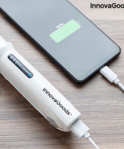 Преса за коса без кабел InnovaGoods. Акумулаторна преса за коса, идеална за изправяне и навиване на коса по всяко време и на място с компактния си размер при пътуване. Има предпазно заключване, автоматично изключване и различни температурни нива за адаптиране към всеки тип коса. Плочите на пресата са с керамично покритие и не увреждат косата. Освен това е много практична, защото може да се използва и като аварийна захранваща батерия по всяко време и място.