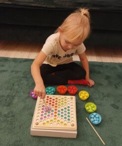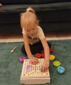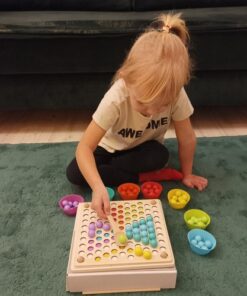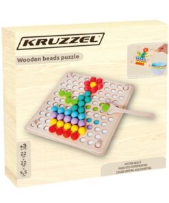 Пъзел от дървени мъниста Kruzzel 22403. MADE OF WOOD – дървените играчки са вечно предложение, което ще зарадва всяко дете. Класическата красота на дървото и неговата издръжливост винаги са го правили високо ценено. Тази суровина изглежда добре както в естествен цвят, така и боядисана. Играта е безопасна за всяко дете. УЧИ – играта с мозайки е чудесен начин за развиване на ръчни умения, сръчност, упражняване на координацията око-ръка и упражняване на умения за логическо мислене. С играчката децата упражняват и търпение и концентрация. BAWI – чудесен начин да се забавлявате страхотно с родителите си. Играта включва подреждане на картинки с помощта на много топки/пъзели с различни цветове. Комплектът включва примерни картинки/модели, които могат да бъдат създадени с помощта на елементите, включени в комплекта. ЦВЕТНИ – живи, контрастни цветове, те добавят естетическа стойност и привличат вниманието на малкото дете и насърчават повторната игра. Чудесен начин да се забавлявате с цялото семейство. Той ще даде възможност на родителите да прекарват времето си с децата си у дома по интересен начин и ще премахне скуката, особено когато времето навън не е благоприятно.