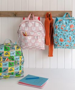 Раница за деца с принт Праисторическа земя Rex London. За деца, луди по динозаврите, нашата детска раница Prehistoric Land е идеалният подарък! На цялата чанта са отпечатани пет различни динозавъра заедно с техните имена. Вземете подходящи аксесоари за обяд и канцеларски материали от Prehistoric Land за пълен комплект. Предлага се и в по-малък размер. Дръжка за носене и регулируеми подплатени презрамки. Подплатен гръб за комфорт. Основно отделение с цип и малък преден джоб за лесен достъп/ За да почистите, избършете с влажна кърпа. Не е подходящо за деца под 3г. Разгледайте още от категорията “Детски раници” ТУК!
