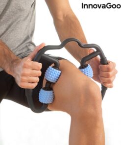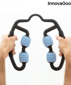Ръчен масажор за тяло, антицелулитен масаж InnovaGoods. Самомасажор за мускули с ролки, чиято основна функция е да ускори процеса на възстановяване и релаксация след физическо натоварване. Като вторична употреба и благодарение на своите ролки с дрениращ ефект, той е много ефективен и за антицелулитни масажи (придружени от лосион или крем). Позволява да се масажира всяка част от тялото, особено краката, ръцете, раменете, ханша и т.н. Натискът на масажа се определя от индивида, в зависимост от силата, която упражнява върху този ръчен масажор.
