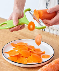 Ръчна кухненска резачка за зеле белачка. Удобната резачка за зеле е перфектен инструмент, който ви позволява да режете зеле на ситно с лекота и без много усилия. С нея можете да постигнете равномерни и фини нарезки от зеле, което е идеално за приготвяне на салати, супи, сокове и други ястия. В допълнение към функцията й за рязане на зеле, тази резачка може да се използва и като белачка за плодове и зеленчуци. С нежното движение на острието, можете лесно да отстраните кората на плодовете и зеленчуците, което значително улеснява подготовката на храна. Това ренде за зеле може да се използва и за рязане на други плодове и зеленчуци, не само зеле. Тя е универсален инструмент в кухнята, който ви дава възможност да подготвяте разнообразни ястия и да нарязвате съставките по желание. Тази резачка е лесна, бърза и удобна за употреба. Тя е създадена да ви осигури максимален комфорт и ефективност при рязането на зеле и други продукти. Благодарение на остриетата от неръждаема стомана, можете да се радвате на прецизни и чисти нарезки. Почистването на кухненска резачка за зеле е безпроблемно. Просто изплакнете я с топла вода и използвайте мек препарат за съдове за почистване. Това ви позволява да поддържате инструмента в чисто и хигиенично състояние. Характеристики на резачката за зеле включват размер от 18 см, случаен цвят и изработка от пластмаса и неръждаема стомана. Тя е дизайнирана със стремеж към удобство и издръжливост, за да ви служи дълго време в кухнята. Тази удобна резачка за зеле е незаменим помощник за всяка кухня и ви помага да приготвите храната по-бързо и лесно. Отнарязване на зеле до почистване на плодове и зеленчуци, тази резачка предлага универсалност и удобство. Независимо дали приготвяте салати, супи или други ястия, тази резачка ви помага да постигнете желаните резултати с минимален труд.