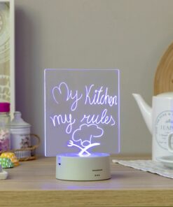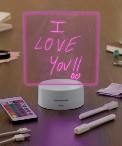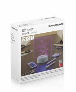 Светещо табло за бележки InnovaGoods. LED светещо табло за бележки и съобщения, което е идеално за всички видове бележки. Включва 2 маркера, гумичка, дистанционно и USB кабел. Има сензорен бутон за включване/изключване и RGB LED с 16 цвята, 5 режима на светене и регулируем интензитет. Тази оригинална и практична LED дъска за писане работи с USB връзка или с батерии. Перфектен за фрази, бележки и креативни и осветени съобщения у дома или в офиса. Креативно осветление: с лед табло за бележки можете да пишете и персонализирате всякакви светещи бележки, фрази и съобщения, които ще привлекат вниманието на всички. Устройството се състои от PP основа и прозрачна, устойчива акрилна плоскост. Неговият елегантен и функционален дизайн го прави подходящ за поставяне на всякакви маси, рафтове, бюро и др. Многоцветен RGB LED: има 10 светодиода с различни опции за осветяване: 16 цвята, 5 режима и регулируем интензитет. Краищата на екрана и всичко, което е нарисувано или написано върху него, свети, придавайки много специална атмосфера на всяко пространство. И всичко се изтрива изключително лесно. Дистанционно управление и аксесоари: нашата LED дъска включва кърпа за изтриване, дистанционно управление (с включена батерия CR2023) за избор на цвят, режим или интензитет на светлината и 2 бели течни маркера с тебешир, които пишат бързо и меко (и които включват интегриран гъба за изтриване за корекции). Мултифункционален, оригинален подарък: освен светлина, бележките могат да осигурят вдъхновение, мотивация, забавление, напомняне и др. Перфектен подарък както за възрастни, така и за деца, който може да се използва у дома и на работа. Тази оригинална декоративна лампа ще събуди любопитството и въображението на всеки. Идеален за офиси и работа от дома. 2 режима на работа: тази LED дъска за бележки работи с USB връзка (включен USB към микро-USB кабел) или с 3 AAA батерии (не са включени), в зависимост от вашите изисквания. Има сензорен бутон за включване и изключване и за смяна на режимите. Това устройство предлага 16 цвята на светлина и 5 режима, позволявайки на потребителите да изразят своето съобщение в различни цветове и интензитет. Неговият дизайн, изработен от PP материал и устойчива акрилна плоскост, подчертава елегантността и функционалността му, като го прави идеален за всяко пространство. Включените аксесоари като дистанционно управление, маркери и гумичка позволяват лесно писане, коригиране и промяна на цвета и интензитета на светлината. Този универсален LED табло е идеален за подарък за хора от всякаква възрастова група и може да предостави вдъхновение, мотивация и забавление както в домашна, така и в работна среда. Той също така предлага възможност за работа с USB връзка или батерии, осигурявайки по-голяма гъвкавост за използване. Разгледайте още продукти в категорията “Домашни потреби” – ТУК!