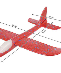 Светещ самолет от стиропор в червено. Самолет играчка – светете небето благодарение на LED светлините в пилотската кабина. Достатъчно е детето да ги включи със специален плъзгащ бутон. Играчката ще изглежда страхотно в топлите летни вечери. Играчка от полистирол е лека и е с изрязана форма, което ще запази вашето дете в безопасност. Състои се от три основни части. В него няма дребни части, които могат да се погълнат. Самолетът има две дупки, през които детето може да решава пътя на полета и акробатиката. Вмъкването на крилото в горната дупка ще направи полетът пълен с акробатични фигури (осмици). Изборът на долния отвор ще работи при плъзгане по права линия. Благодарение на това вашето дете може да играе както у дома, така и на открито. Самолетът не може да навреди на апартамента поради своята лекота. Не е нужно да се тревожите за потенциални загуби, причинени от забавлението на децата.