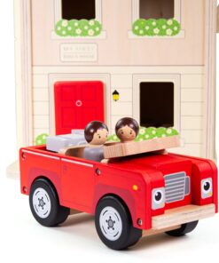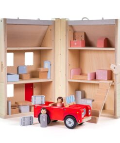 Сгъваема дървена къща за кукли Bigjigs. Запознайте малките с първия им миниатюрен дом с нашия комплект сгъваема къща за кукли. Отворете дървената къща за кукли, за да разкриете триетажна къща. Предлага се с баня, кухня, трапезария, спални и таванско помещение – има също кабриолет червена кола и дървени кукли Mr & Mrs. Включените 13 масивни мебели за къща за кукли – идеални за малките ръчички за разглеждане, хващане и подмяна. Те могат също да обзаведат къщата за кукли по свой вкус – да се играе с тях отделно или с големи и други деца. Предлага се с удобна въжена дръжка за носене за удобно съхранение и пренасяне. Изработен от висококачествени материали с отговорни източници. Отговаря на настоящите европейски стандарти за безопасност. Разгледайте още от категорията “Къщи за кукли и принадлежности” ТУК!
