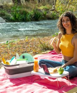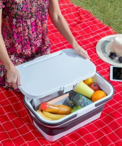 Сгъваема кошница за пикник InnovaGoods. Тази сгъваема кошница за пикник с капак-маса е перфекта за наслаждаване на открито. Има 2 дръжки, подложка за чаши и слот за закрепване на мобилен телефон или таблет. Капакът може да се използва като поднос или да се превърне в маса чрез разгъване на металните крака. Сгъваема кошница за пикник с голям капацитет (16 л), която се сгъва лесно, за да пести място при съхранение. Идеална за пикник, риболов, къмпинг, плаж, пътувания с кола и др. Сгъваема, спестяване на място: Нашата сгъваема кошница за пикник с капак-маса е перфектна за наслаждаване на хранене на открито със семейство или приятели. Оригиналният й дизайн позволява лесното й сгъване, за да може да се съхранява, заемайки по-малко място. Тази качествена компактна и преносима кошница за пикник е здрава и издръжлива. Голям капацитет, 16 л: нашата кошница за пикник с капак има голям капацитет за съхранение, което я прави идеална за семейства или групи приятели, които искат да споделят страхотен ден за пикник. Могат да се съхраняват храни и напитки, както и салфетки, чаши, прибори и други съдове. Многофункционален капак, поднос-маса: тази сгъваема кошница за пикник е много практична, тъй като капакът може да се използва и като поднос или да се превърне в маса чрез разгъване на металните крака на гърба. Освен това има подложка за чаши и слот в горната част за закрепване на мобилен телефон или таблет. 2 дръжки за носене, предпазно затваряне: Тази иновативна кошница за пикник с поднос-маса е лека и лесна за транспортиране, тъй като има 2 дръжки за удобно носене навсякъде. Капакът има две езичета за по-сигурно затваряне. Многофункционална, идеална за открито: Тази кошница за пикник със сгъваема маса е идеалният спътник за пикник, лагеруване, риболов, градина, къмпинг, плаж, басейн, барбекюта, партита на открито, пътувания с кола, екскурзии и др. Полезна е също и у дома като допълнително място за съхранение.