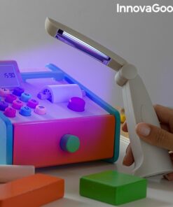 Сгъваема лампа за дезинфекция InnovaGoods. Сгъваема, преносима UV лампа за дезинфекция, която бързо и ефективно премахва бактериите и всички видове микроорганизми със своята ултравиолетова светлина. Благодарение на компактния си и лек дизайн, който почти не заема място, може да се транспортира и съхранява лесно в дома, офиса, при пътуване и т.н., така че винаги да е под ръка, когато предметите се нуждаят от дезинфекция. Може дори да се носи удобно в дамска чанта. Освен това е много лесен за работа. Просто го поставяте на разстояние от 3 до 5 см от повърхността, която трябва да бъде стерилизирана, и извършвате между 6 и 8 почистване на повърхността.