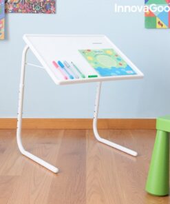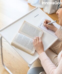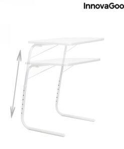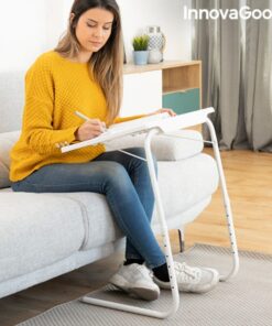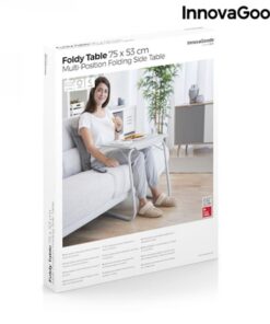 Сгъваема помощна маса – многопозиционна InnovaGoods. Многофункционална многопозиционна сгъваема странична маса с 6 нива на височина и 3 ъгъла на наклон, които позволяват до 18 различни позиции. Отличава се със своя лек, преносим дизайн и страхотната си способност да се адаптира към много пространства и приложения. Може да се използва на закрито и на открито, като предлага множество възможности, като хранене, работа с лаптоп, рисуване, учене, игра и др., на дивана, във фотьойл, в леглото, на терасата и т.н. Издържа до 2-5 кг, лесно се почиства и лесно се сгъва за удобно съхранение или транспортиране, като заема минимално място.