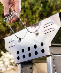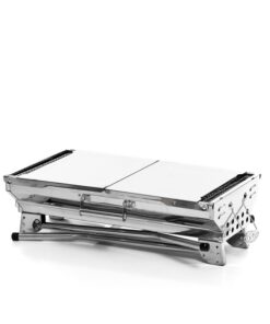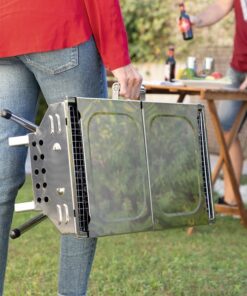 Сгъваемо барбекю от неръждаема стомана InnovaGoods. Идеален начин за прекарване на деня с барбекю на открито със семейството и приятелите ви. Неговият сгъваем и преносим дизайн го прави удобен за носене навсякъде със себе си, сгъва се в калъф и заема минимално пространство. Това завършено и практично барбекю на дървени въглища има странични 2 рафта/тави, които могат да бъдат поставени във вертикално положение, за да блокират вятъра, или в хоризонтално положение за съхранение на храна, напитки, подправки, кухненски прибори и др. Фиксираната дръжка за носене го прави лесно за пренасяне и може да се използва и за окачване на дрехи, престилки и др. Барбекю от неръждаема стомана, което е много лесно за сглобяване и използване. Горната скара за готвене на храна е подвижна и има 2 топлоустойчиви дръжки за безопасно преместване или повдигане. Има и 2 подвижни дръжки с пружини отстрани. Това барбекю на дървени въглища подпомага циркулацията на въздуха за по-добро изгаряне на въглища, тъй като има вентилационни отвори в двата края. Освен това има долна скара с дебелина под 4 мм, която да се постави върху дървените въглища, което също предпазва барбекюто от разваляне. Разгледайте още от категорията “Барбекюта на дървени въглища” ТУК!