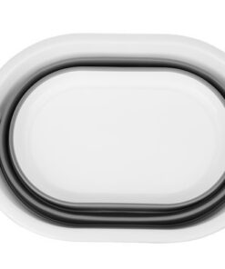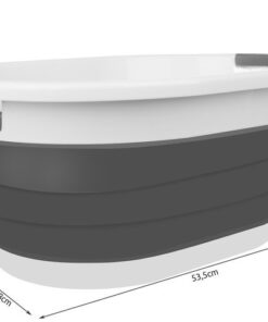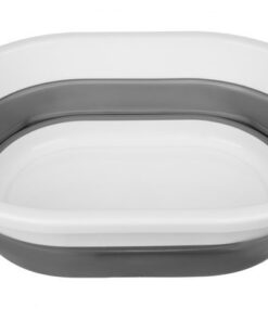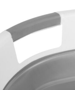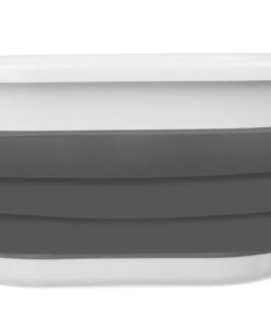 Сгъваем силиконов кош за пране в сиво и бяло. Силиконовият леген е универсален за употреба. Работи много добре както в домакинството – напр. в банята като кощ за пране и бельо, както и в туризма като бебешка вана или един от най-полезните кухненски артикули, също в палатка или в лятна вила. Туристическият кош се сгъва и разгъва изключително бързо и лесно, благодарение на което всеки може да се справи с него. Когато е сгънат, заема много малко място. Изработен от висококачествени материали – плътен силикон и пластмаса, устойчива на механични повреди и пукнатини. Практичен силиконов кош е оборудвана със специални дръжки за носене, благодарение на които може да се премести удобно и лесно на всяко място.