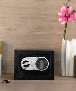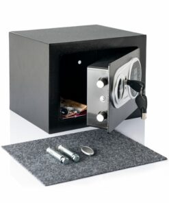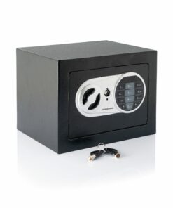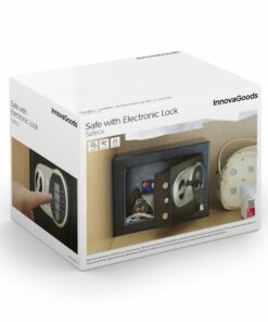 Сейф с електронна ключалка InnovaGoods. Този сейф с електронно заключване е идеален за сигурно съхранение на ценни вещи. Отваря се с помощта на 4-цифрена цифрова комбинация. Включва 2 ключа за ръчно отваряне, постелка и аксесоари за монтиране на стената. Здрав дигитален сейф, изработен от подсилена стомана с дебела врата със закачалки и LED индикатори. Идеален за дома и офиса. Работи с 4 x AA батерии (не са включени). Здрав и компактен: нашата сейфова кутия с електронна брава е произведена от подсилена стомана, изключително здрава и разполага с врата с голяма дебелина със закачалки вътре. Освен това заема малко място благодарение на модерния си и компактен дизайн, така че може да бъде позициониран на различни места у дома или в офиса. Двойна система за сигурност: тази стоманена сейфова кутия с електронна брава може да се отвори с цифрова или ръчна система. Автоматичното му отваряне работи с 4 x AA батерии (не са включени) и изисква да въведете избрания цифров код. Ръчното отваряне се извършва с помощта на включените аварийни ключове. Електронна комбинация: този електронен сейф ви позволява да зададете електронна комбинация, за да я отворите за повишена сигурност. Този таен код се състои от 4 числа, които потребителят трябва да избере. Областта на цифровите клавиши има LED индикатори. 2 ключа за ръчно отваряне: нашият сейф с кодиран вход включва 2 ключа за сигурност за ръчно отваряне при спешни случаи, в случай че забравите кода за автоматично отваряне. Включва също защитна подложка за вътрешната основа на сейфа. Многофункционална, преносима: тази малка сейфова кутия с кодова ключалка е перфектна за съхранение на бижута, карти, пари, писалка, документи, паспорти, часовници или други ценни предмети. Включва 2 метални тапи и 2 винта за окачване на стената, ако желаете.